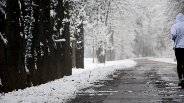 Salju jatuh di mana-mana.